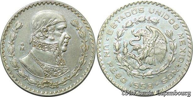S2109 Mexico Republic 1 Peso 1958 Estados Unidos Mexicanos Silver ->Make offer