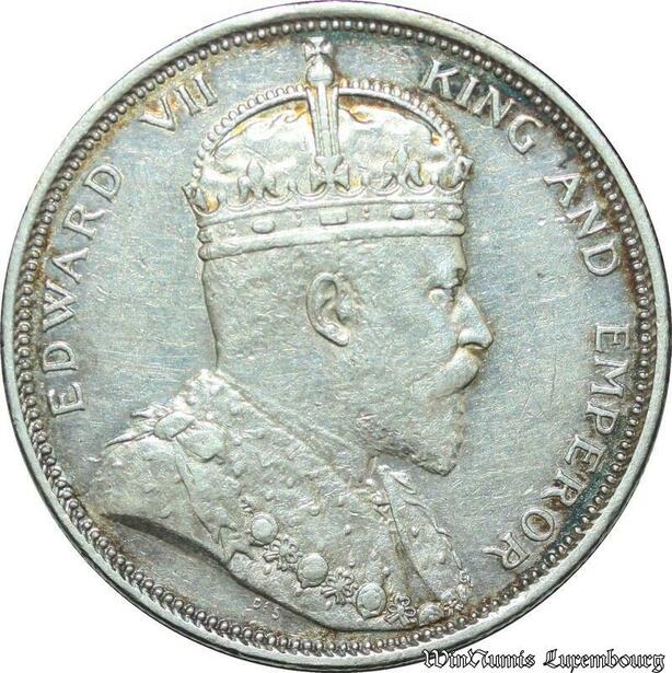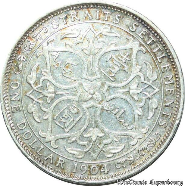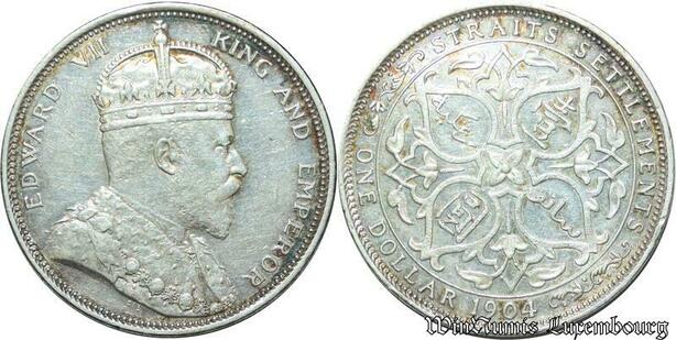 S2117 Scarce Malaysia One Dollar Settlements Edouard VII 1904 Silver AU