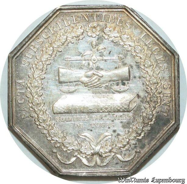 S2162 France Rare Jeton Notaires Ville de Tours Bae Argent Silver- Faire Offre