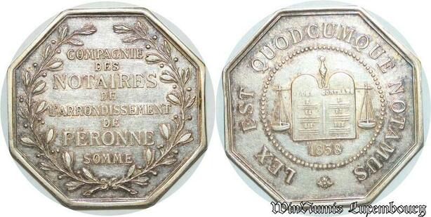 S2165 France Rare Jeton Notaires Compagnie Notaires Péronne Somme Argent Silver