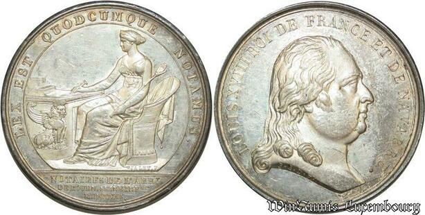 S2169 France Rare Jeton Notaires At Rouen Seine Louis XVIII 1811 Argent SUP -