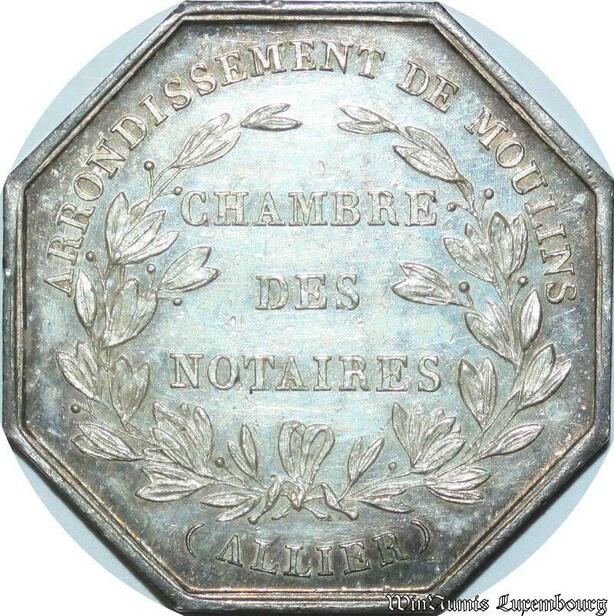 S2188 France Jeton Chambre Notaires Arrondt Moulins Allier Leges et Mores Argent