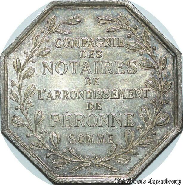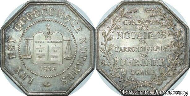 S2189 France Jeton Compagnie Notaires Arrondt. Péronne Somme 1858 Argent Silver FDC