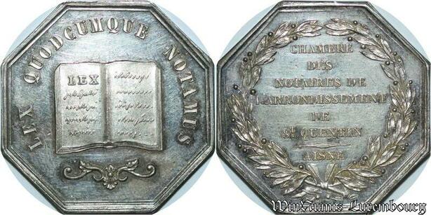 S2191 France Jeton Chambre Notaires Arrond. St Quentin Aisne Argent Silver SUP