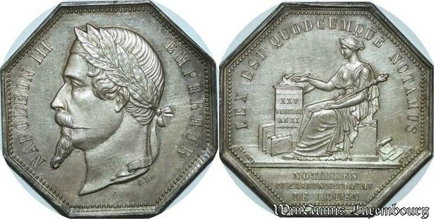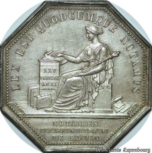S2194 France Rare Jeton Notaires Arrondissement Rouen Napoléon 1862 Silver SPL