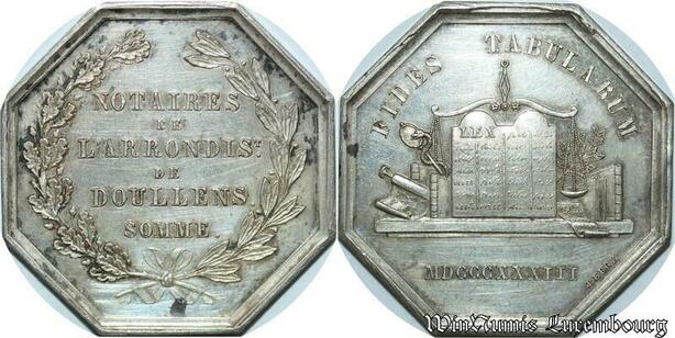 S2203 France Jeton Notaires Doullens Somme 1833 Fides Tabularum Argent