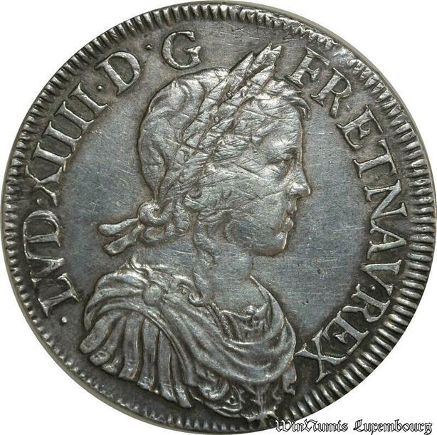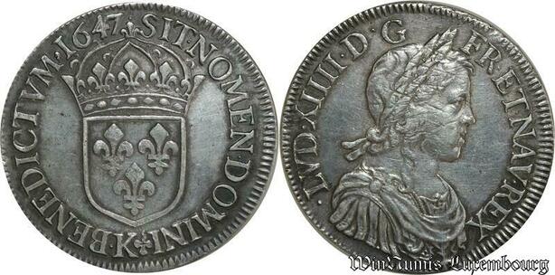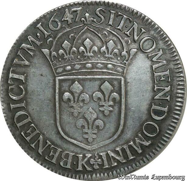 S2336 Rare France Ecu Louis XIV Mèche Longue 1647 K Bordeaux Argent Silver TTB++
