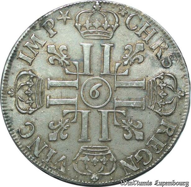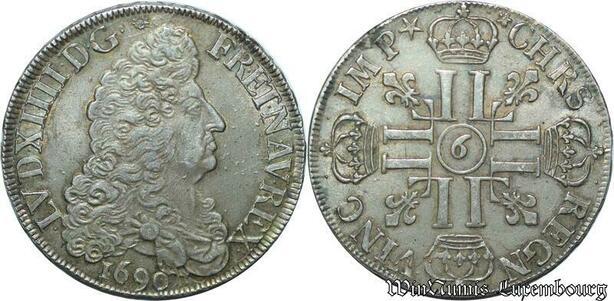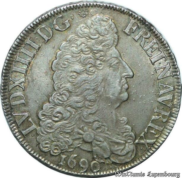 S2350 Très Rare France R4 Ecu Louis XIV Aux 8 L 1690 9 Rennes inversé Silver SUP