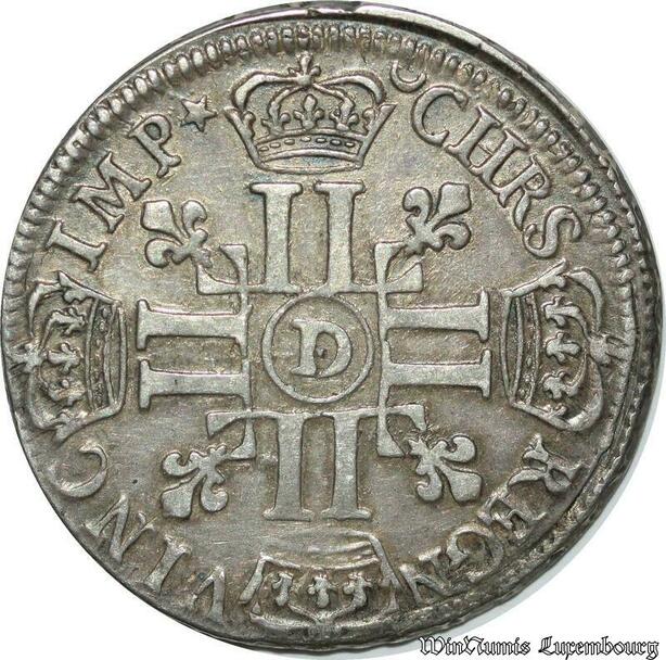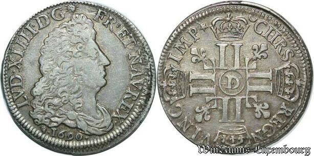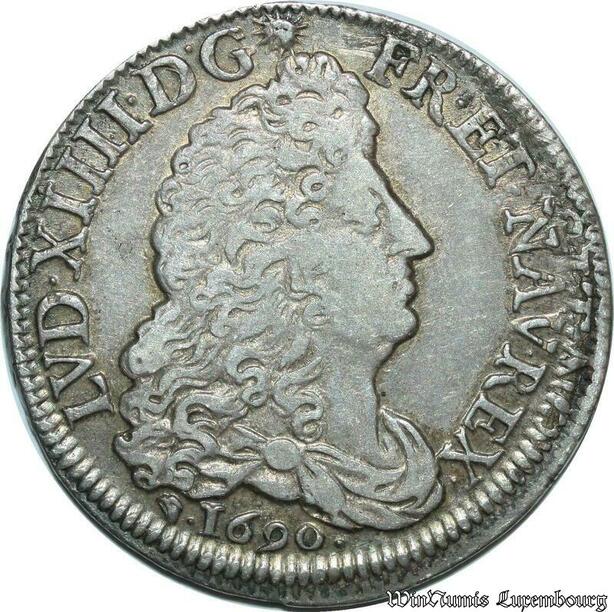 S2353 Rare France 1/2 Ecu Louis XIV Aux 8 L 1690 D Lyon Argent Silver rf - Faire Offre