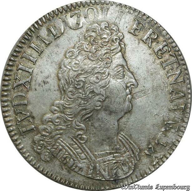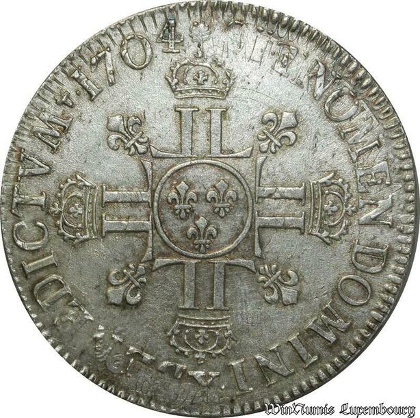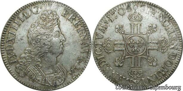 S2356 Rare France Ecu Louis XIV Aux 8 L 1704 X Amiens Silver Quasi Superbe ++++