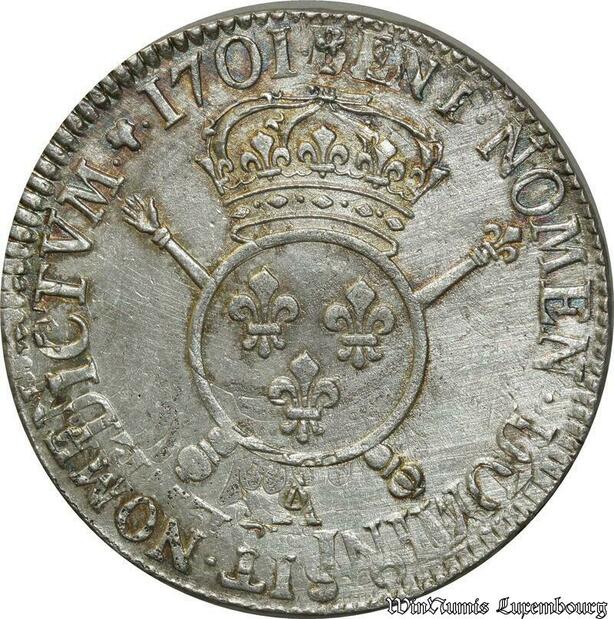 S2357 Rare France Ecu Louis XIV Aux Insignes 1701 A Paris Argent Silver Qualité !