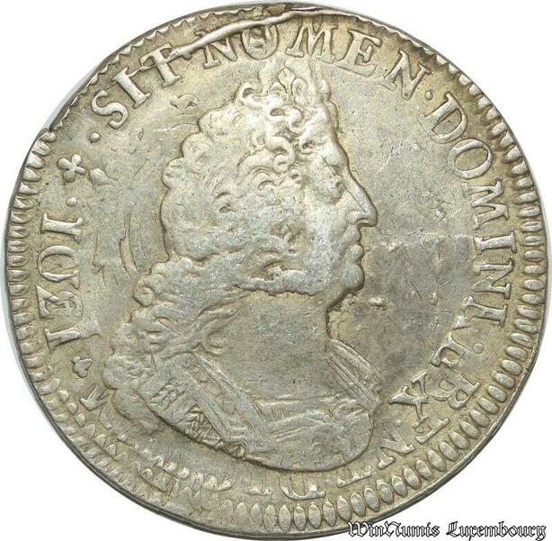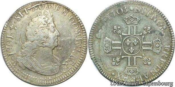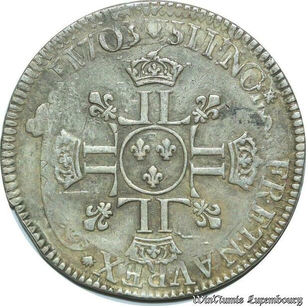 S2360 Rare France 1/2 Ecu Louis XIV Aux 8 L 1703 A ref 1301 Paris Argent Silver