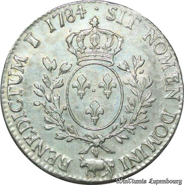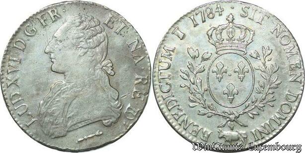 S2377 Rare France Ecu Louis XVI Aux Branches d'Olivier 1784 Vachette Pau Argent