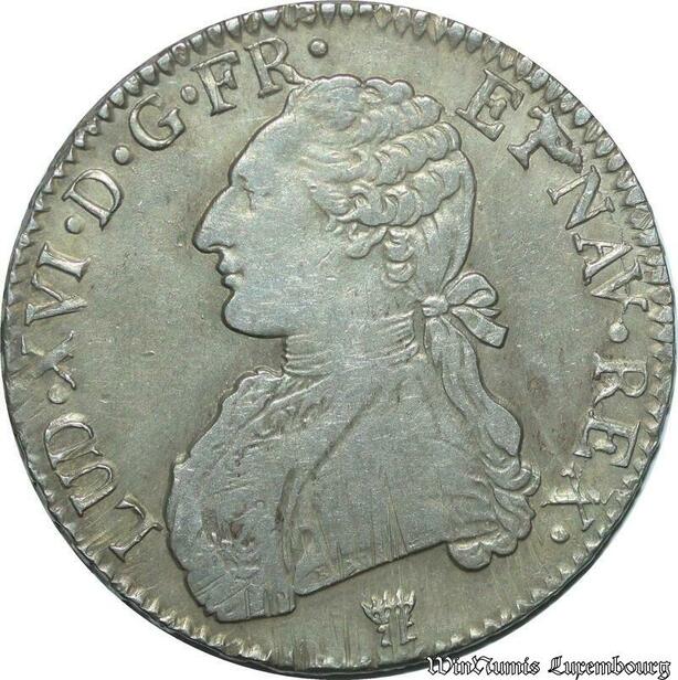 S2383 Rare France Ecu Louis XVI Aux Branches d'Olivier 1785/4 I Limoges Argent