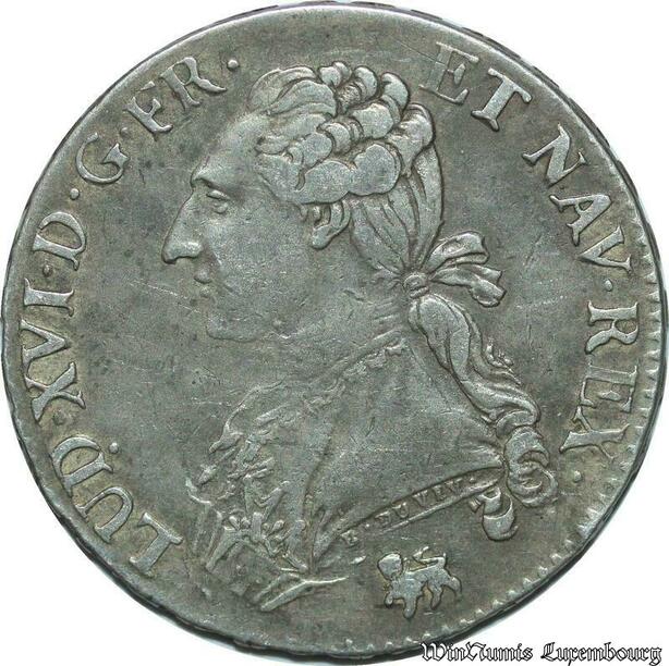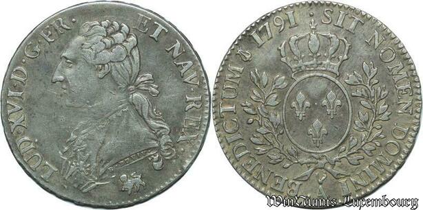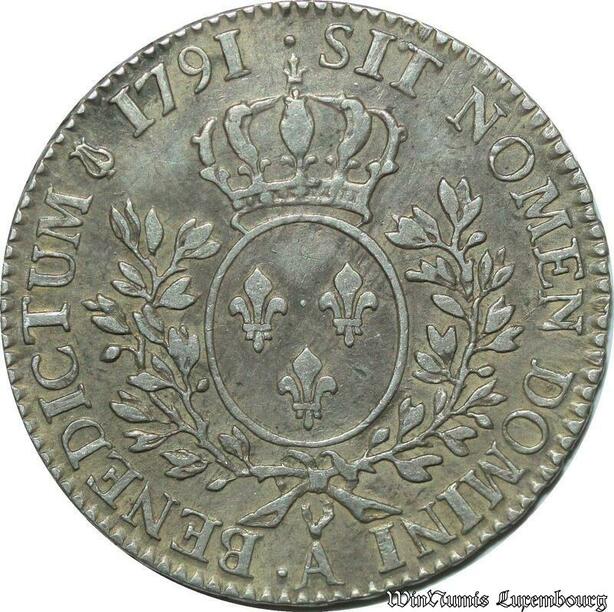 S2389 Rare France 1/2 Ecu Louis XVI Branches d'Olivier 1791 .A Paris Leopard Argent