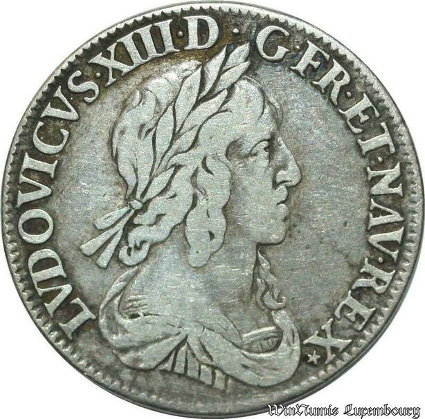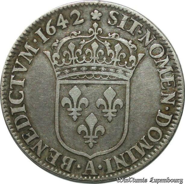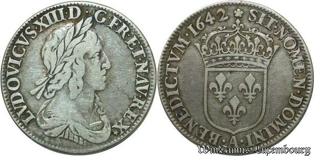 S2392 France R3 1/4 Ecu Louis XIII 2nd poincon Warin 1642 A Paris ROSE + * apres Rex