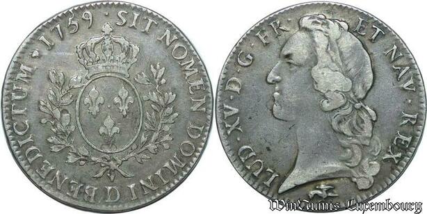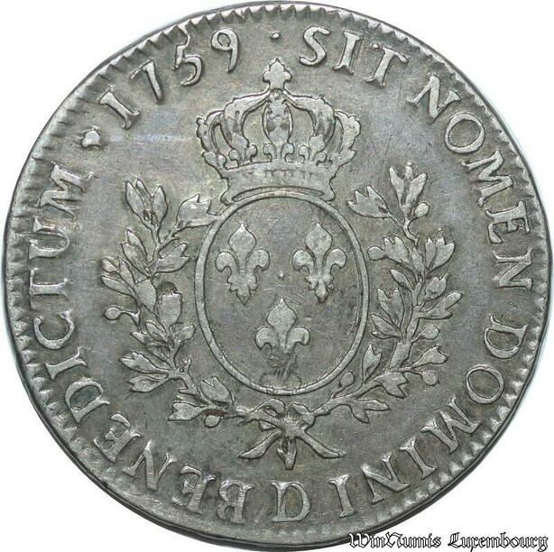 S2398 Rare France Ecu Louis XV Au Bandeau 1759 D Lyon Argent Silver - Faire Offre