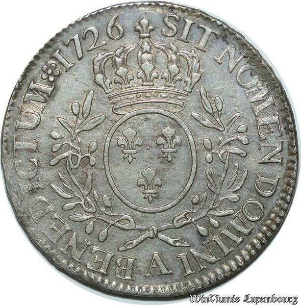 S2400 Rare France Ecu Louis XV Au Bandeau 1726 A Paris Argent Silver SUP