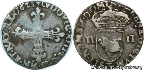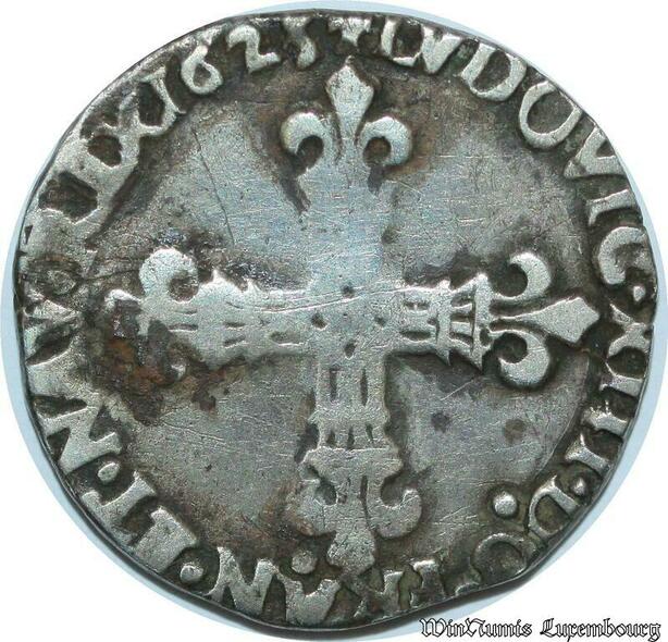 S2416 Rare France 1/4 Ecu Louis XIII Croix Fleurdelisée 1623 T Nantes Argent