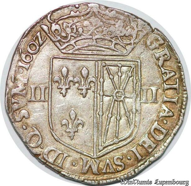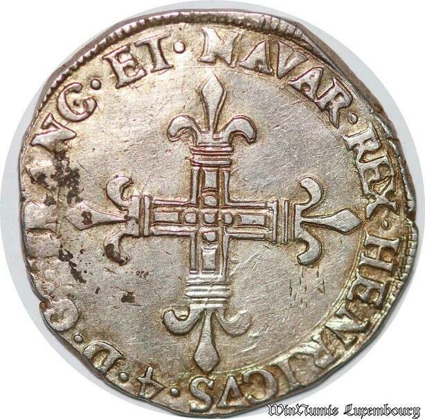 S2476 Rare France 1/4 Ecu Henri IV 1589-1610 de Navarre 1602 Saint-Palais Silver SUP
