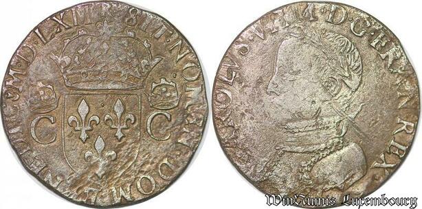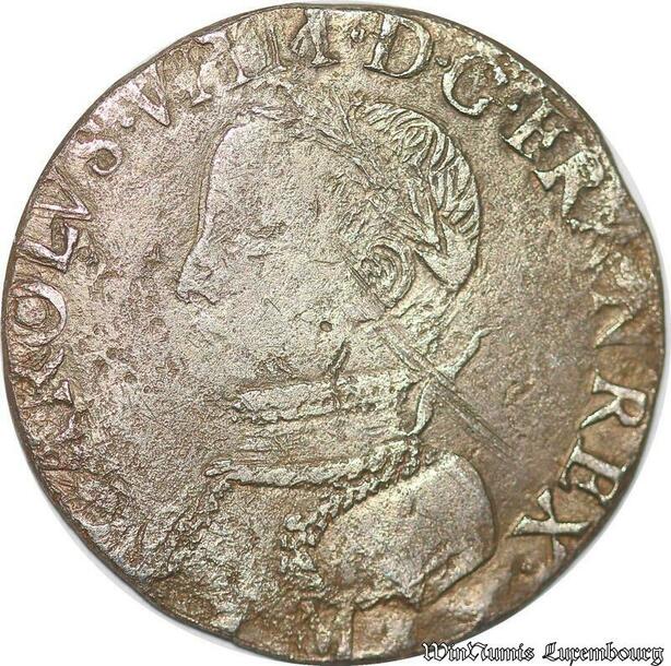 S2482 Rare France Teston Charles IX 2e type 1563 M Toulouse Silver