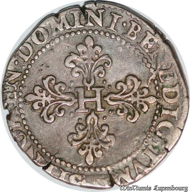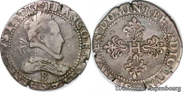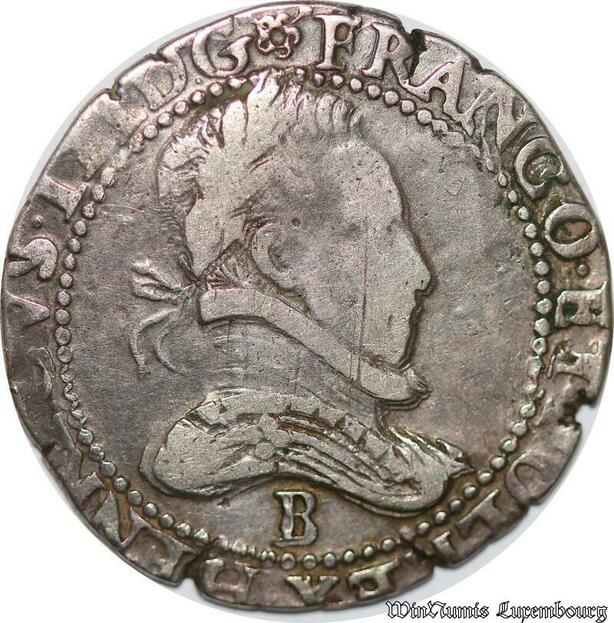 S2484 Rare France Franc au col plat Henri III 1574-1589 158- B Rouen Argent