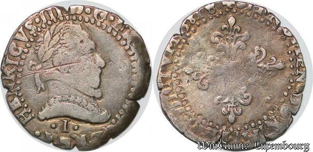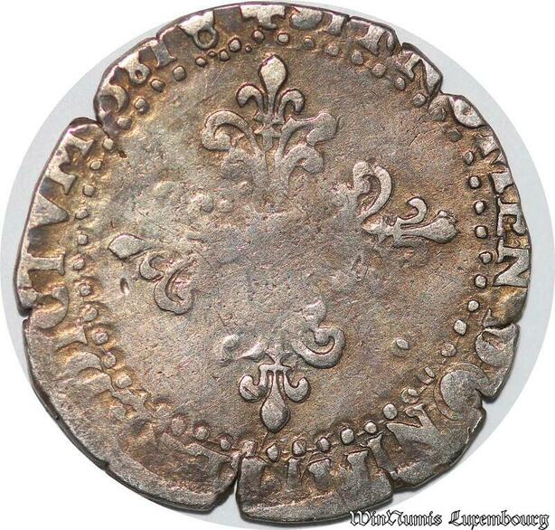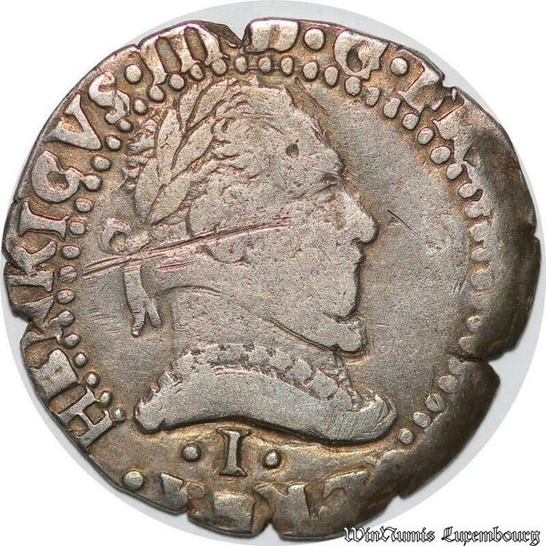 S2485 Rare France Demi-Franc au col plat Henri III 1581 I Limoges Argent