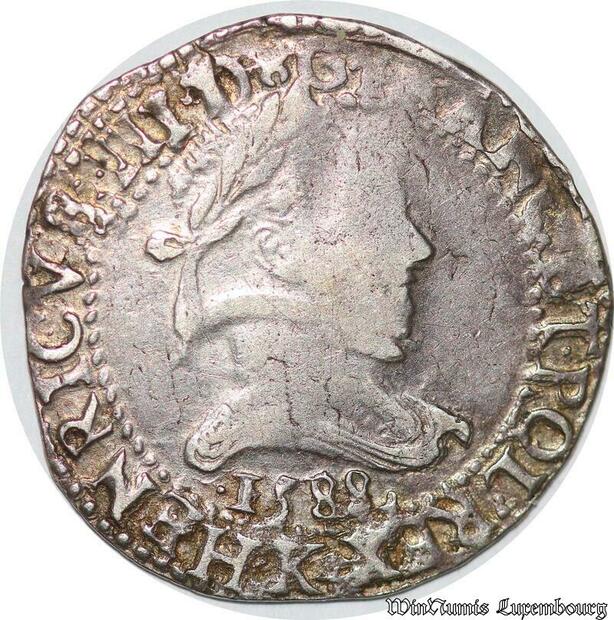 S2489 Rare France Demi-Franc au col plat Henri III 1588 K Bordeaux Argent Silver TB