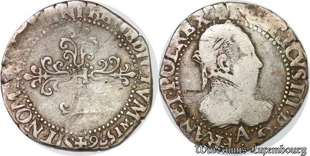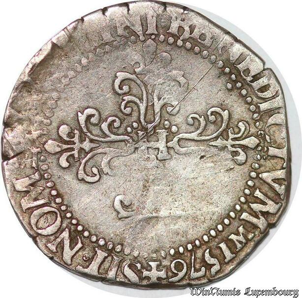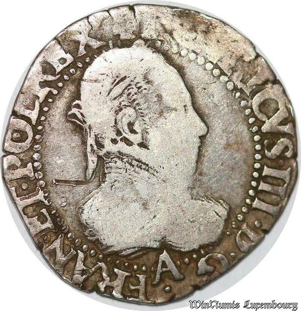 S2494 Rare France 1/4 Franc au col plat Henri III 1576 A Paris Argen