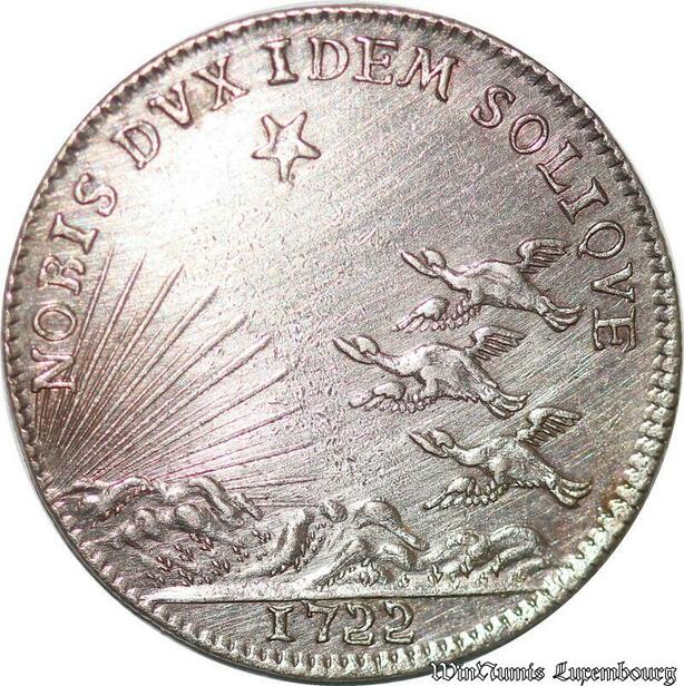S2963 Rare France Jeton Louis XV Bourgogne Noris Dux Idem Solique 1722 Silver SPL FDC
