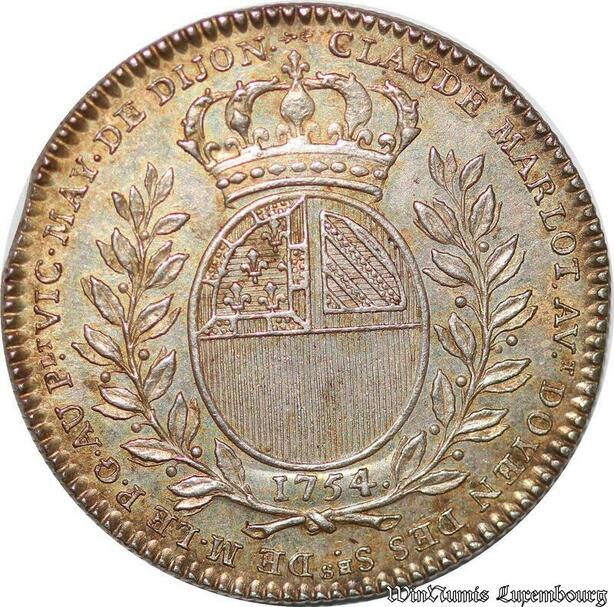 S2978 Rare France Jeton Token Louis XV Marlot Maire Dijon 1754 Argent