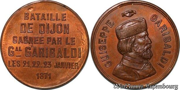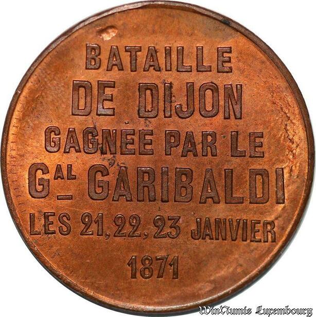 S2979 France Rare Médaille Giuseppe Garibaldi Bataille Dijon 1871 Superbe
