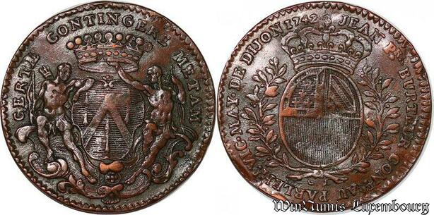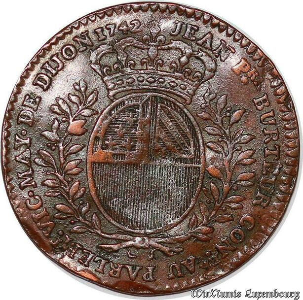 S3099 France Jeton Jean Pierre Burteur Conseiller Au parlement Maire Dijon 1742 TTB ++