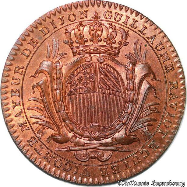 S3121 Rare France Jeton Token Guillaume Raviot Ecuyer Vicomte Mayeur Dijon 1772 FDC !