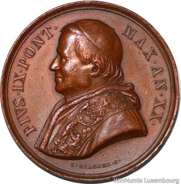 S3259 Rare Medal Papal States Vatican Pius IX Bianchi Mastai Feetti 1849 AU SUP