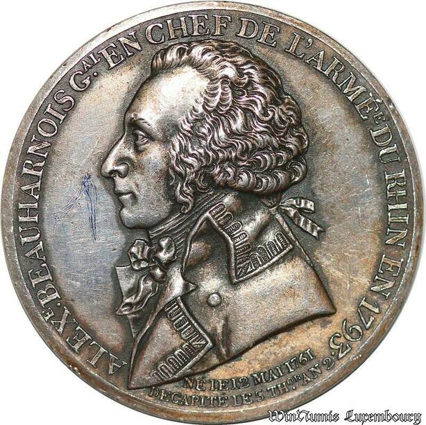 S3284 France Médaille Alexandre Beauharnois Général Armée Rhin 1793 Argent Silver