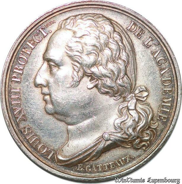 S3286 France Médaille Louis XVIII Protecteur Académie Institut Royal France Gatteaux