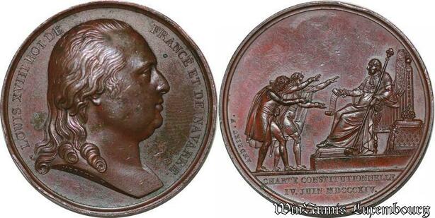 S3307 France Médaille Louis XVIII Roi Charte Constitutionnelle Andrieu 1814 SPL