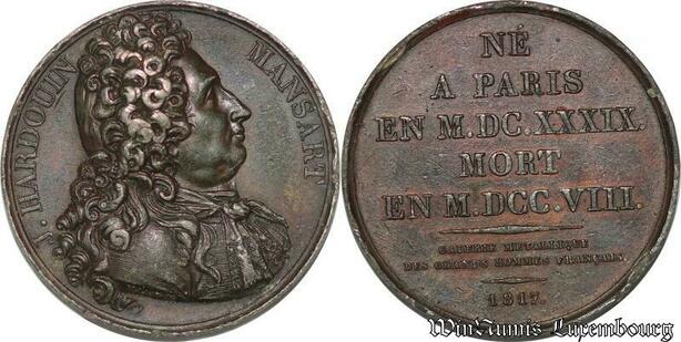 S3318 France Médaille Jules Hardouin-Mansart Galerie Francais 1817 Silver
