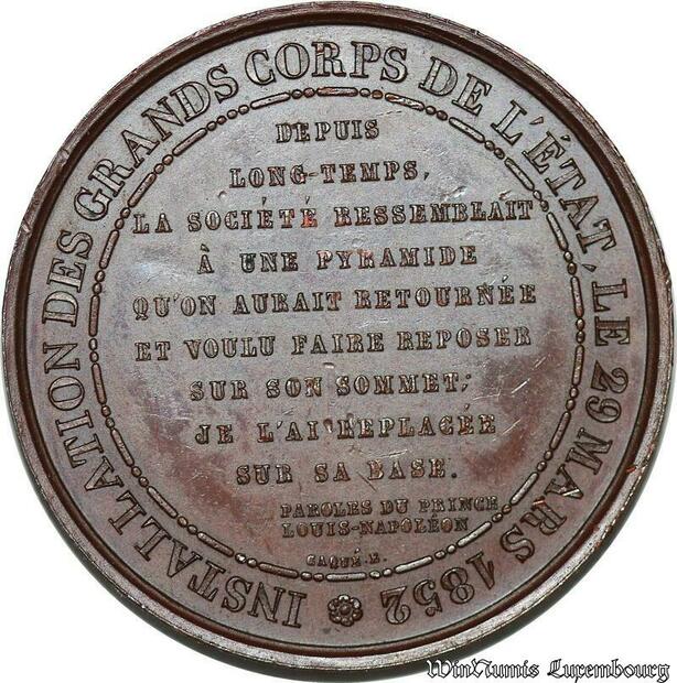 S3319 France Rare Médaille Louis Napoléon Installation Corps État Paris 1852 CAQUÉ