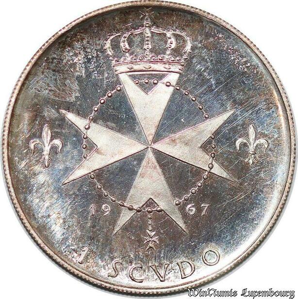 S3354 Malta 1 Scudo Angelus De Mojana 1967 Argent Silver FDC BE PF Proof