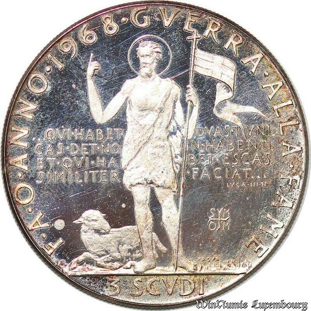 S3355 Malte 3 Scudi Angelus De Mojana Guea Alla Fame 1968 coins FDC BE PF Proof