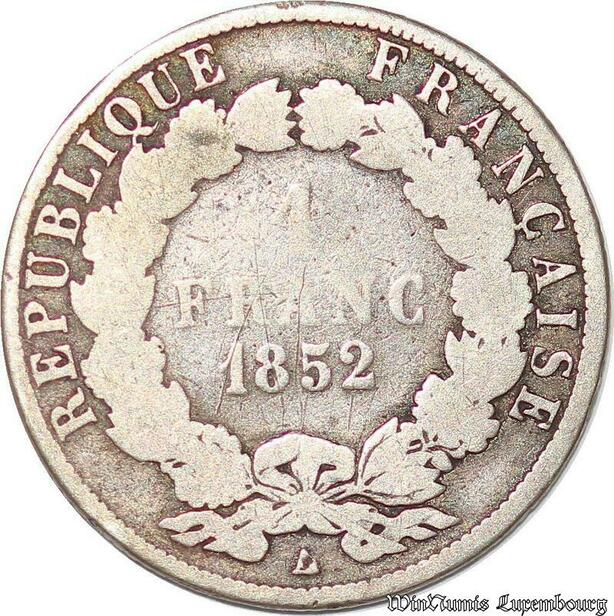 S3492 France 1 Franc Louis Napoléon 1852 A Argent Silver - Faire