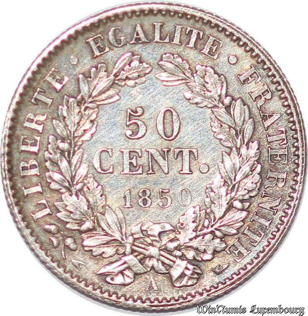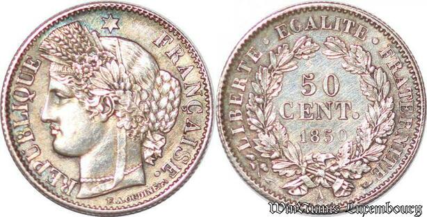 S3497 Rare France 50 Centimes Cérès IIe République1850 A PAris Argent Silver SUP SPL