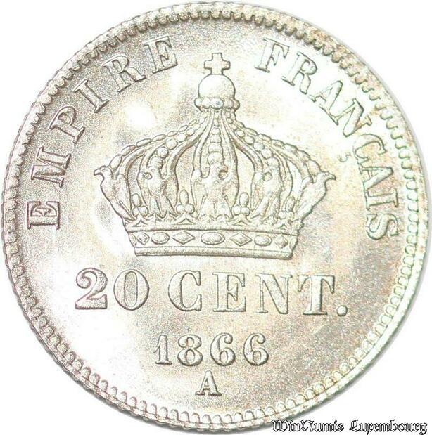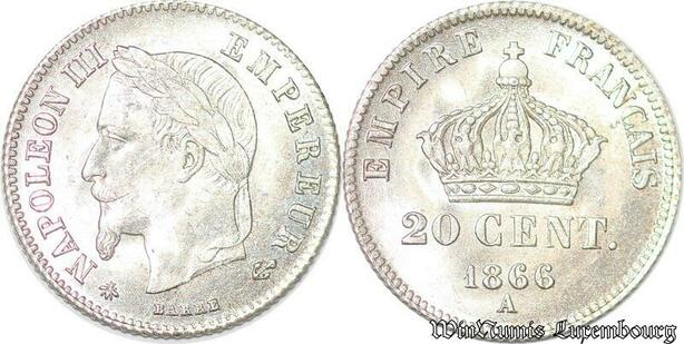 S3501 Rare France 20 Centimes Napoléon IIITête Laurée Petit Module 1866 Paris FDC