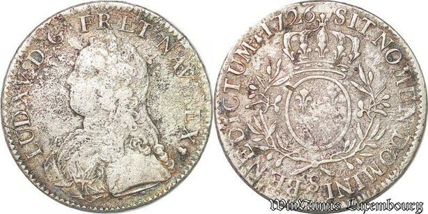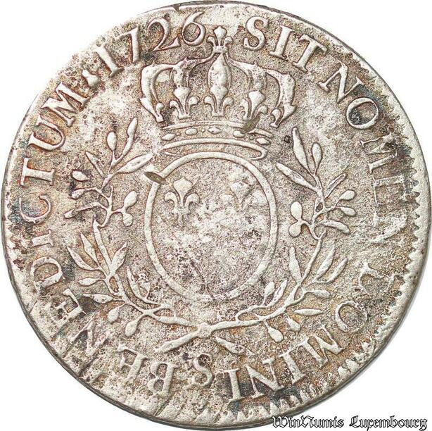 S3505 Rare France Ecu Rameaux Olivier Louis XV 1726 S Reims Argent Silver