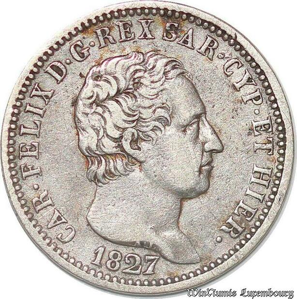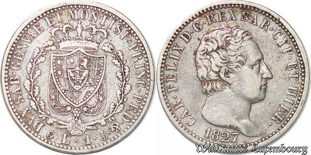 S3523 Rare Italy Rare 1 Lire Charles Félix Sardaigne 1827 P Genova Silver