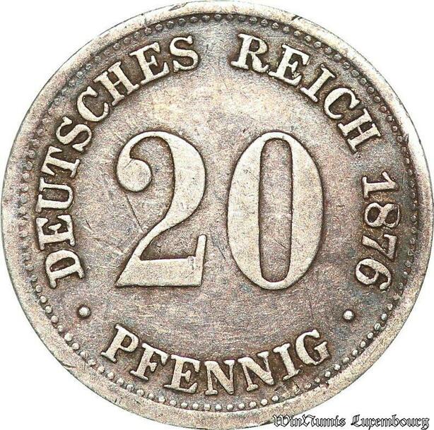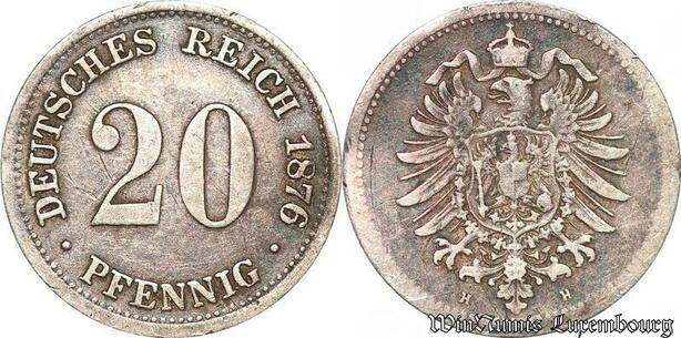 S3538 Germany 20 Pfennig Kaiserreich 1876 H Argent Silver - Faire Offre