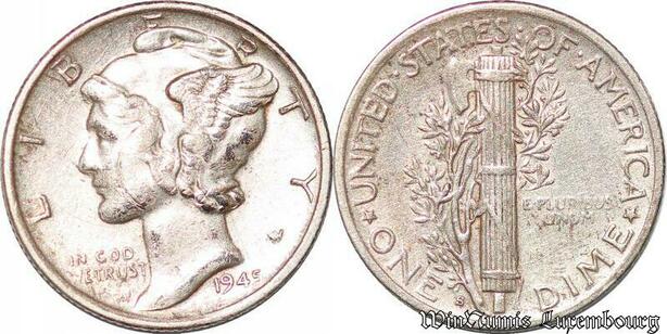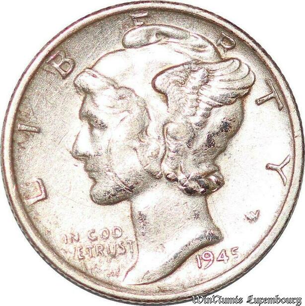 S3567 USA One Dime Mercury Head Winged Liberty S San Francisco 1945 Silver ->Make offer