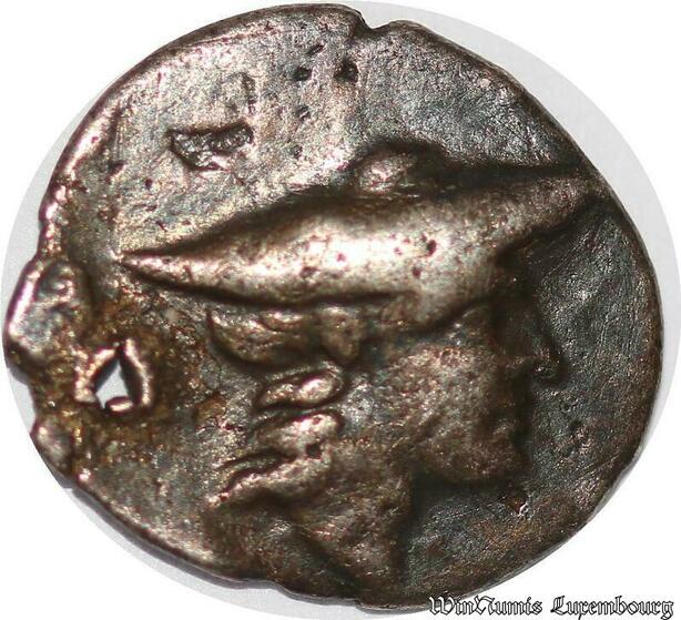 S3585 Rare Greek Etolie Ligue étolienne Drachme Kausia Wildpork 195-188 BC Silver